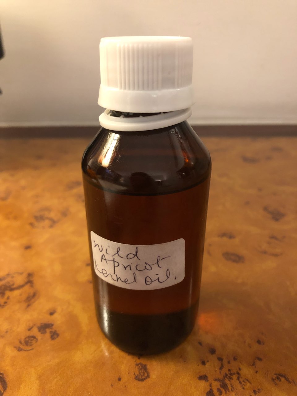こちらはアプリコットオイル、ヒマヤラで自然に育った杏のオイル。農家のおばちゃんたちが自分たちでオイルにしています。熱を全くくわえていないコールドプレスというらしい。