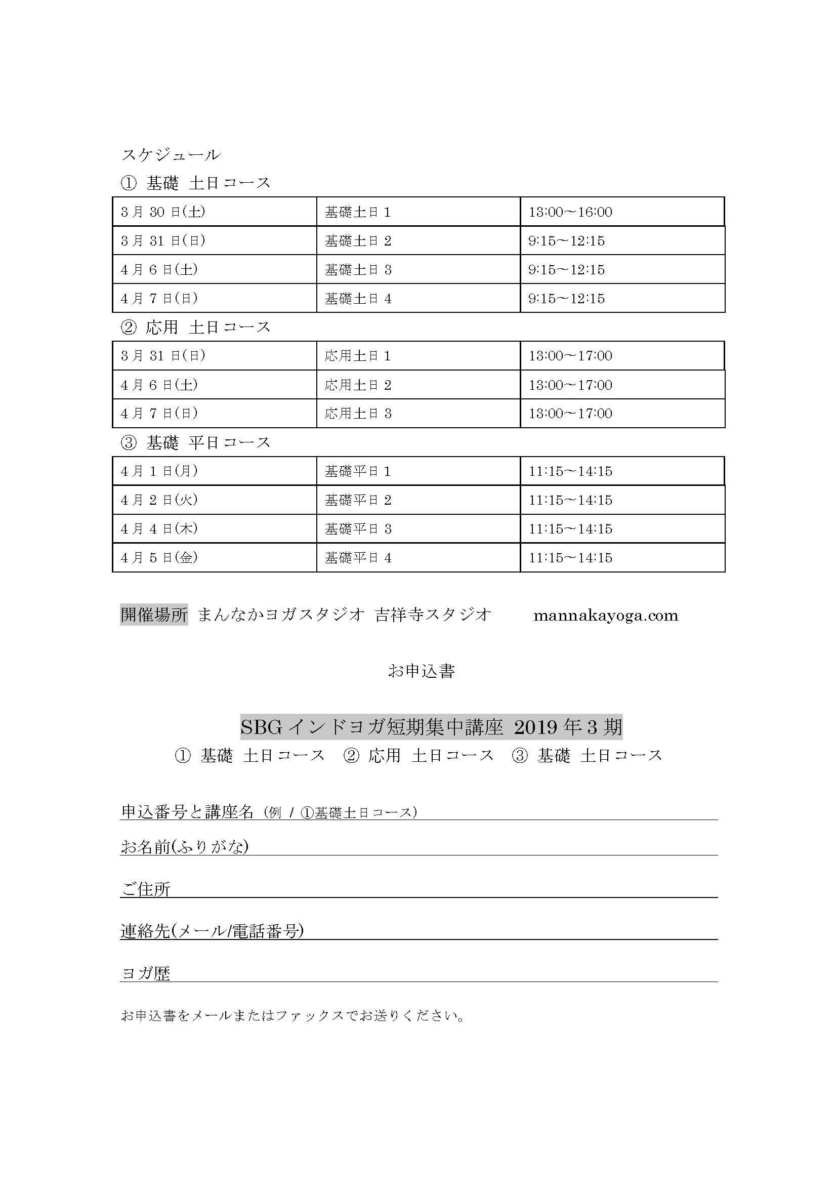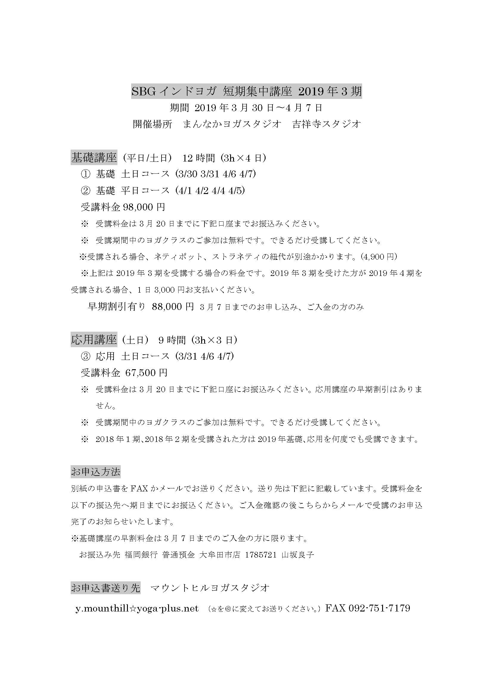 SBGインドヨガ 短期集中講座 募集要項です。