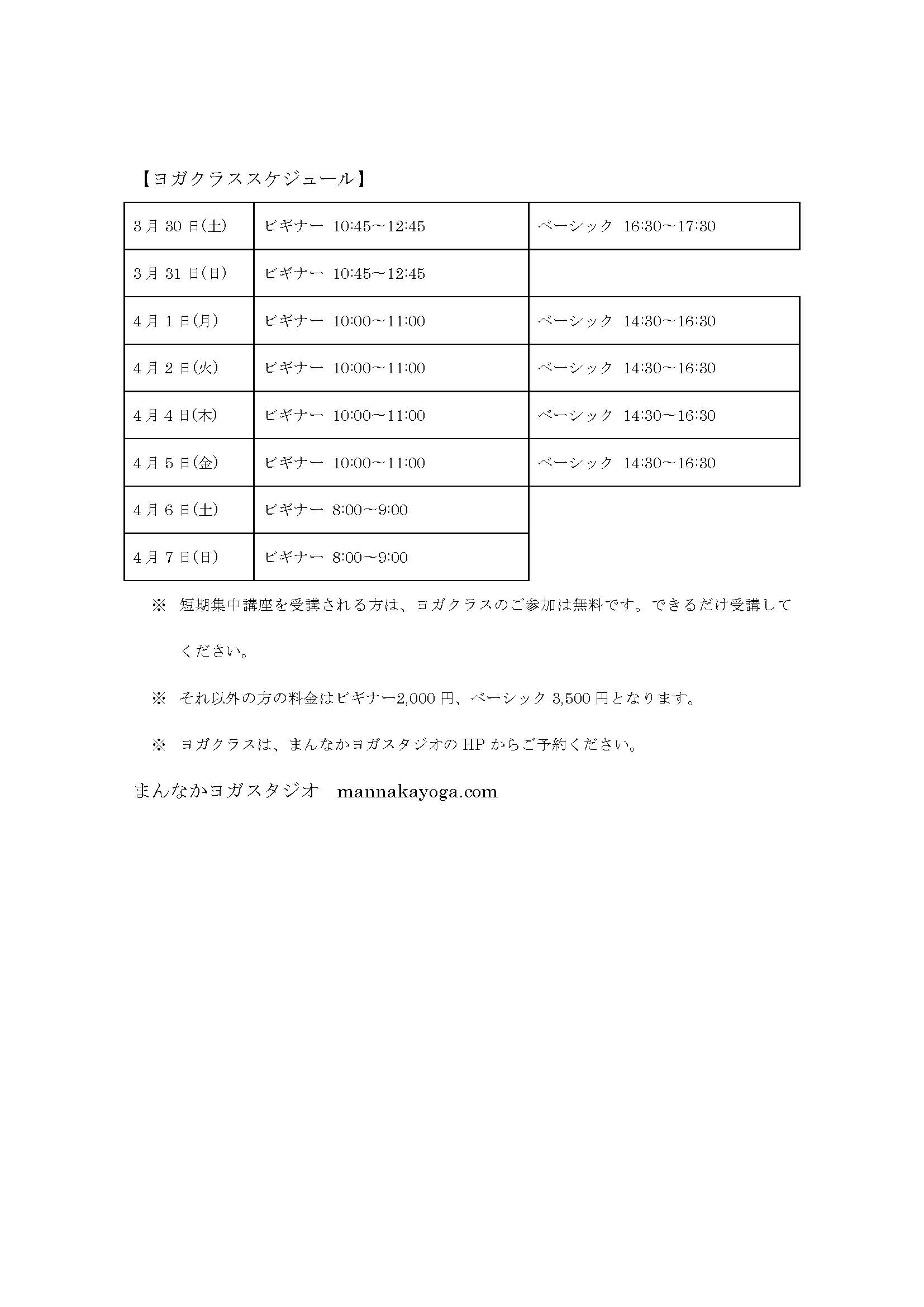 期間中のヨガクラスのお申し込みは まんなかヨガまでお願いします。