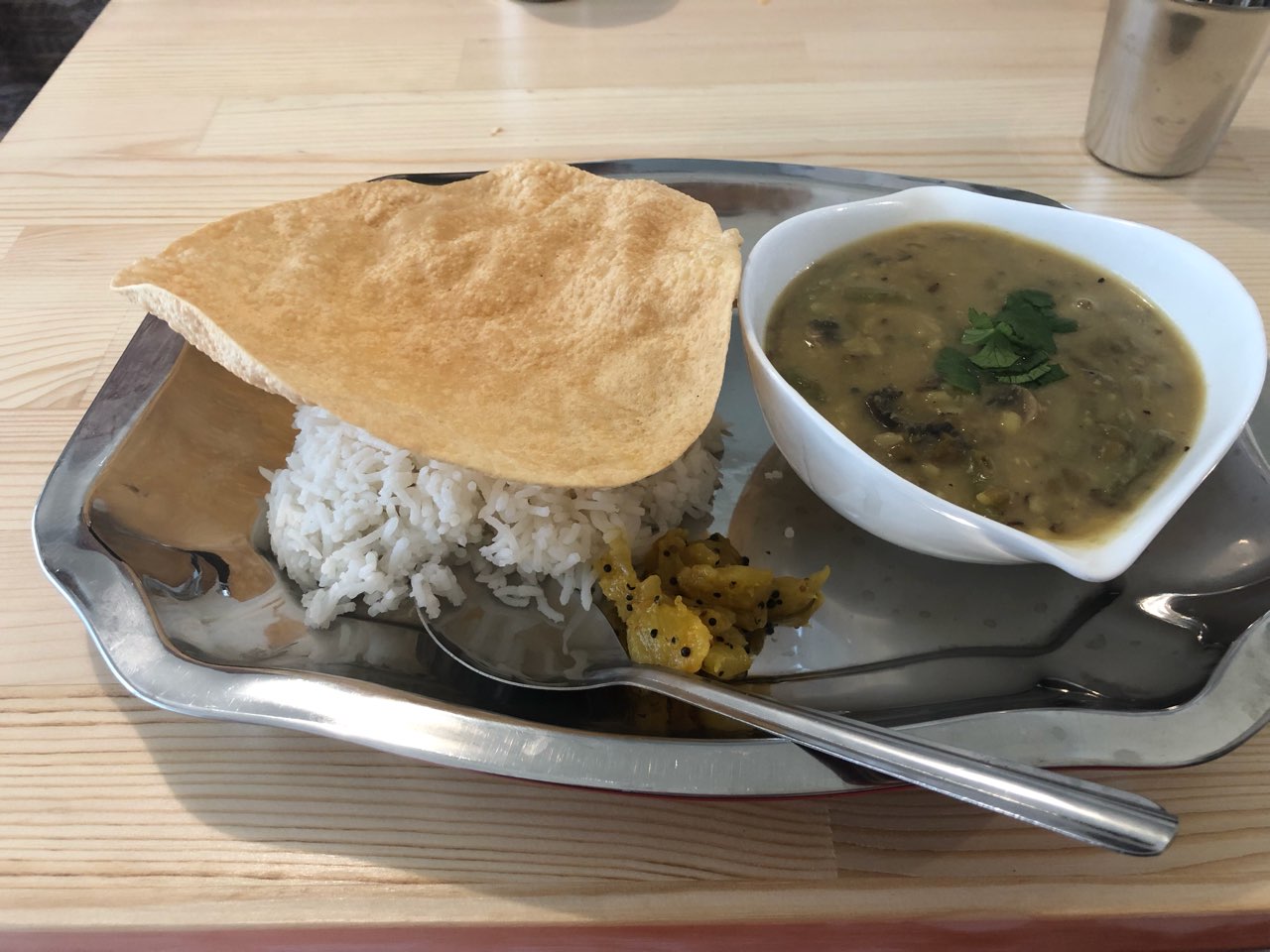 シェア会では、インドでトレーニング中にグルジが作ってくれるムング豆のお粥を作りました。ギーがなかったので発酵バターを。