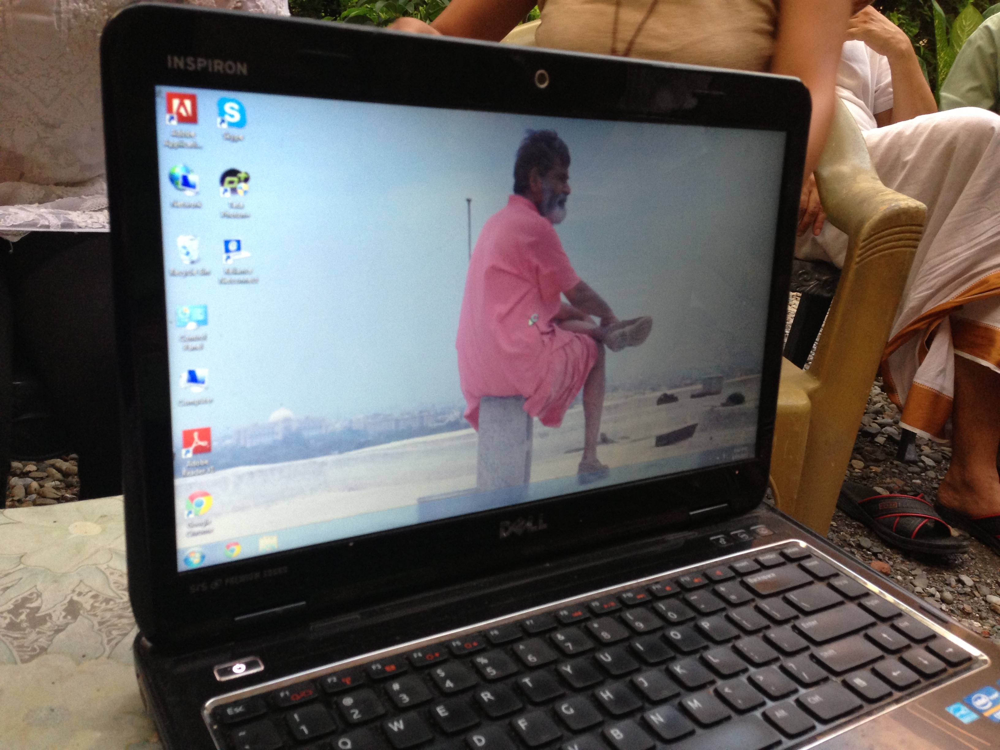 写真はグルブラザー パラムのノートパソコン。グルジ大ファンの彼のスクリーンはやはりグルジです。