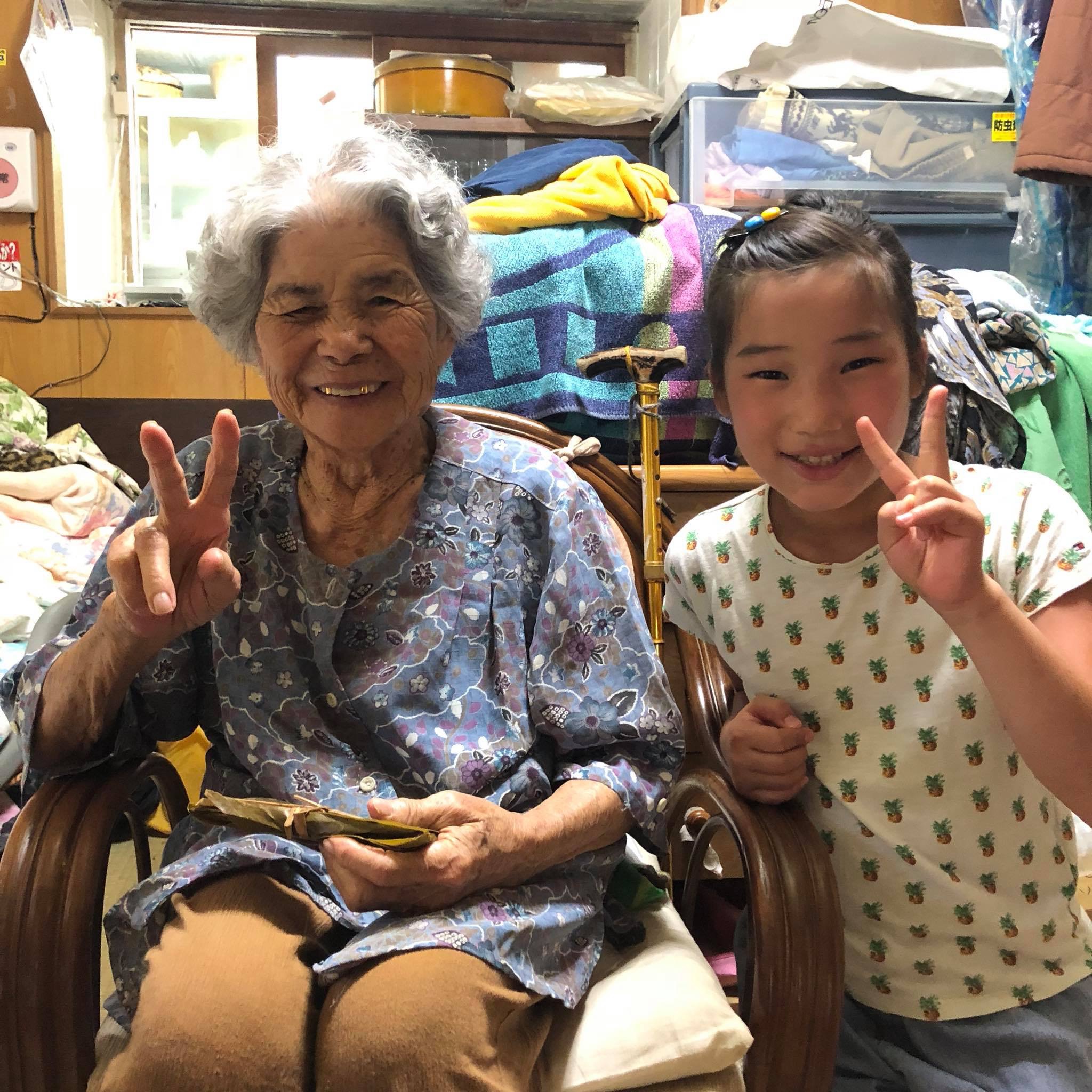 写真は民宿のおばぁ92歳と娘10歳。いいお顔されてます、会えてよかった!今月最後に会いたくて会えたのはおばぁでした。