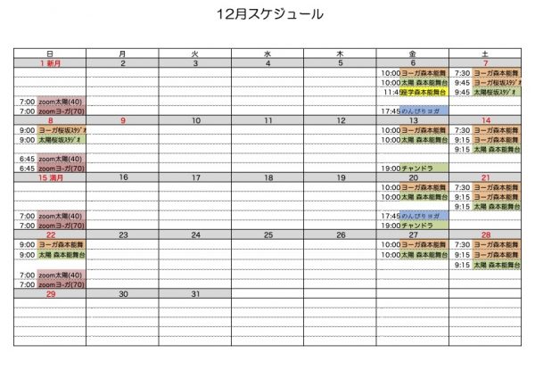 12月のスケジュールです。
