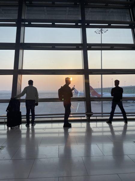 デリー空港で。