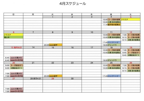 4月のカレンダーです。
