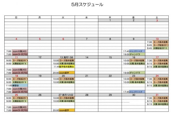 ということで、平日クラスが金曜から火曜へ。など変更が少しあります。