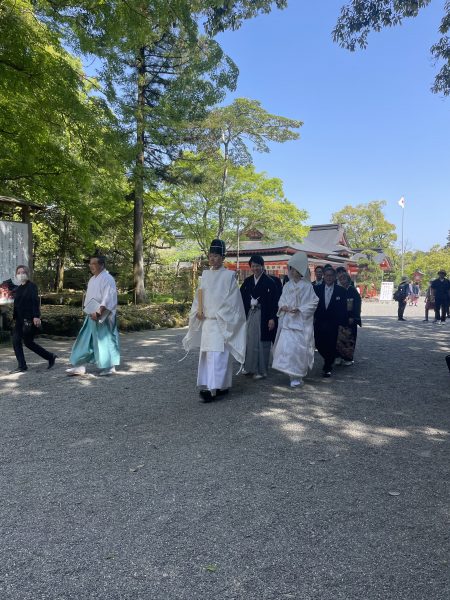 結婚式に向かわれる御一行と並んで歩きました。いいお天気でよかったです!