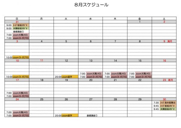8月のスケジュールと知らせです。