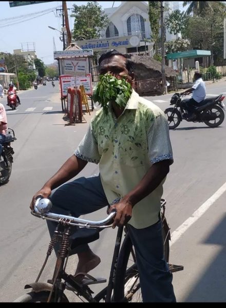 今日はナイロンのTシャッツを口の周りに巻きつけてる人もみました!笑