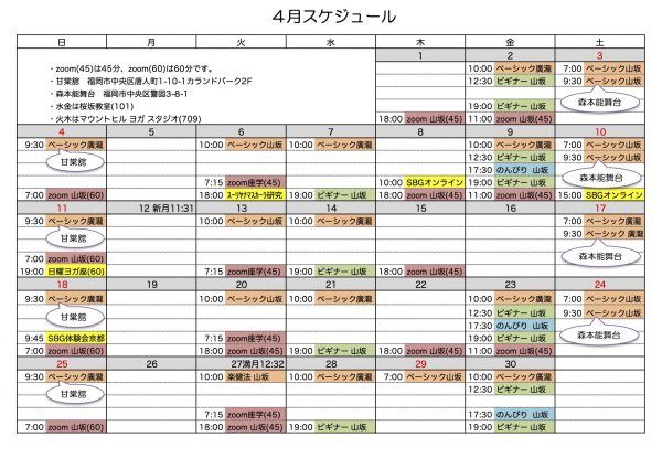 4月のスケジュールを公開しています。