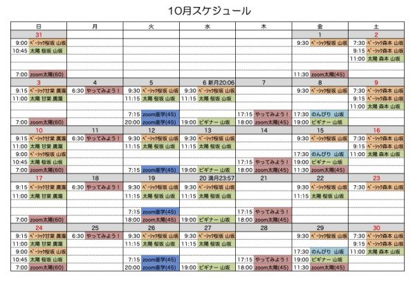 10月のスケジュールです!時が過ぎるのが早すぎる。