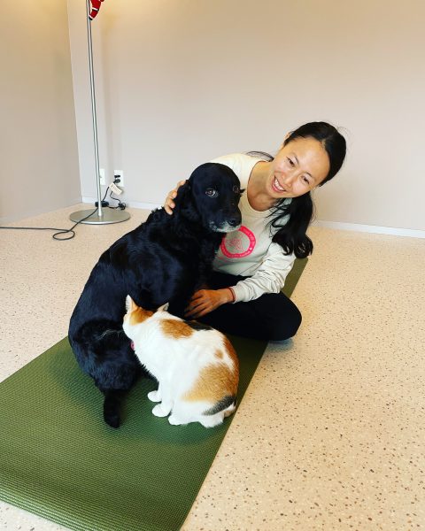 マットを敷くと、ピーちゃん(犬)とシバちゃん(猫)が乗ってきます。