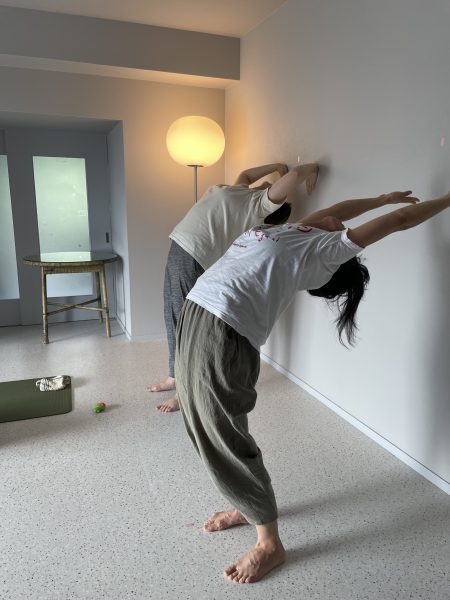 チャクラアーサナを壁で。