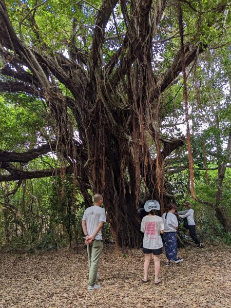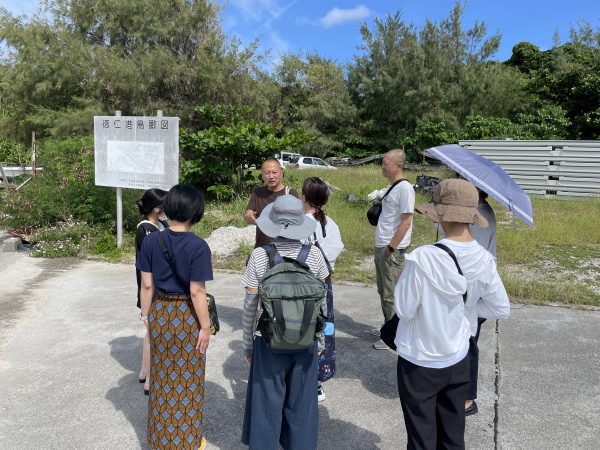 神の島、久高島の聖地ポイントで説明をしてもらいます。