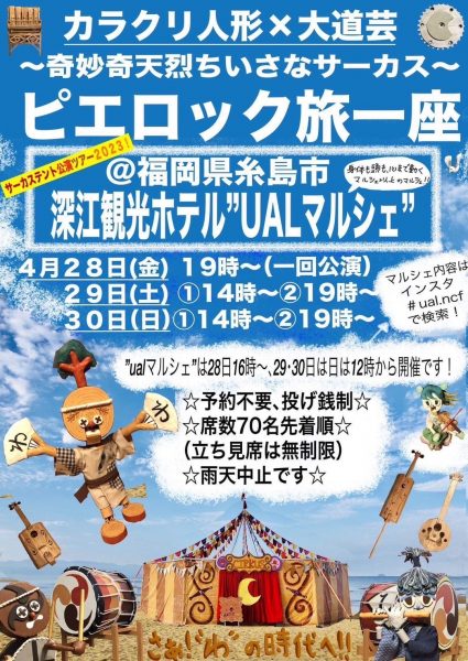 今週末は糸島の深江観光ホテルのピエロック旅一座へ