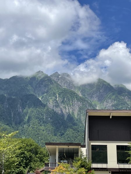 1000mから2000mのドライブに、向こうに見えているのは北アルプス、3000mくらいの山々。