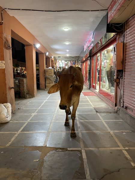 夜のバザール。牛さんもいます。