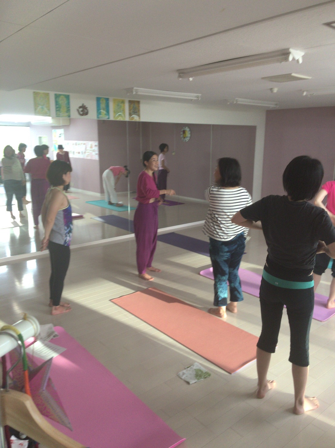 週末のヨガクラスはこのような感じです。3、4名から14、15名までと幅広く。。。
